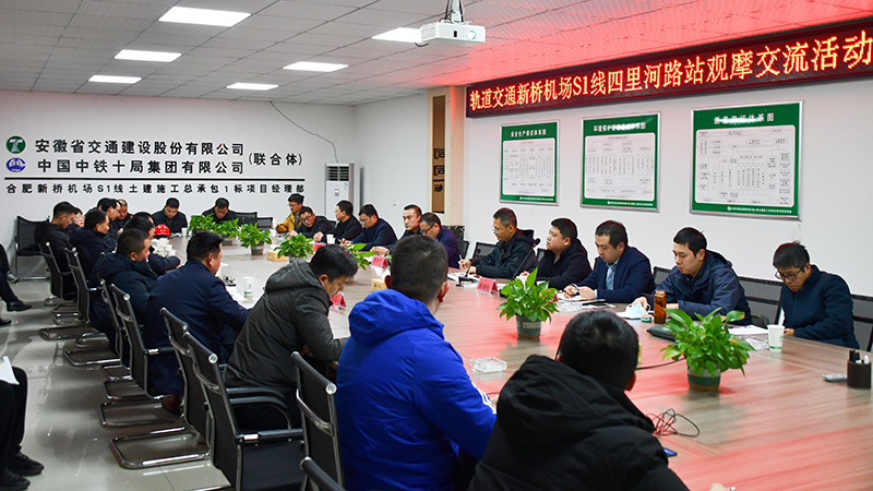 2月9日下午,合肥市建設項目安全質量文明施工管理觀摩交流會,在安徽省交通建設股份有限公司合肥市軌道交通新橋機場S1線土建1標項目四里河路站施工現(xiàn)場舉行。合肥市建筑質量安全監(jiān)督站站長杜德平、市軌道交通建設工程質量安全監(jiān)督站站長汪勁松、市軌道集團建設分公司副總經理周巨恒等相關領導出席觀摩會,安徽交建常務副總裁、總工程師儲根法陪同觀摩。
